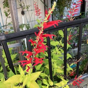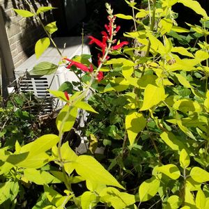 パイナップルセージが咲いてました❤️❤️。 葉色がライム色な品種でしょうか⁉︎ 〜近所にて〜