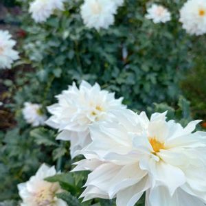 真夏に切り戻した白い大輪ダリア🤍 たくさん咲いています🤍🎶 かなり年数が経った球根ですが よく咲いてくれて嬉しいです😄