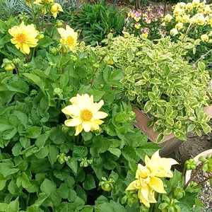 黄色のミニダリア💛 数年植えっぱなしですが たくさん咲いてくれて 日々 元気をもらっています🙌 ٩(^ᴗ^)۶