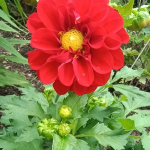 ☔の一日… 庭パトで見つけた赤いミニダリアの蕾❣️ ちょっぴりテンション⤴⤴ 暗い画像ですが🙏
