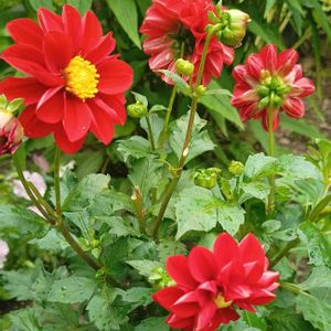🍀おはようございます🍀 地植えの黄色いミニダリアの 球根を分けて 横一列に並べていますが、 蕾が出来てきました🎶 今年も黄色いミニダリアが 楽しめそうです(◍•ᴗ•◍)