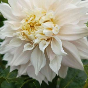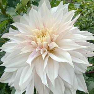 前picの白い大輪ダリアとは 同じ白でも、少し色が入る大輪ダリアです\(๑╹◡╹๑)ノ♬ ほんのりと 淡い紫、淡いピンクっぽい色が入ります 白い大輪ダリア🤍 この二種類がこれから長く楽しめそうです🎶