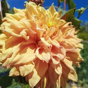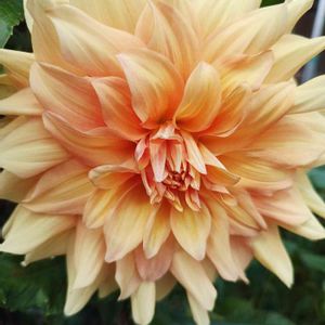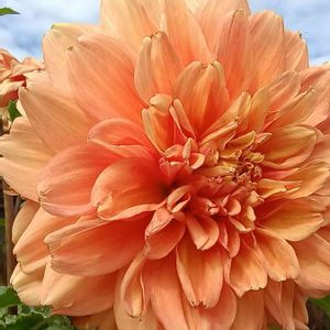 🍀おはようございます🍀 真夏に切り戻していた 大輪ダリア リド🧡 また咲き始めました( ╹▽╹ ) アプリコットの大きなダリアは 存在感抜群です😊