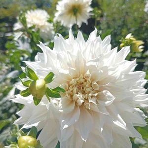 🍀おはようございます🍀 長年 庭で咲いてくれる白い大輪ダリア🤍 蕾が次々に咲いてくれて嬉しいです🎶
