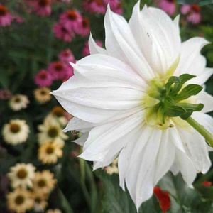 🍀おはようございます🍀 白い大輪ダリアがエキナセアの方を向いて咲いていて🤳 裏側のダリアで失礼します😊