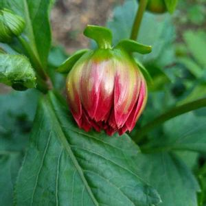 蕾をpicしたミニダリアの あの可愛い蕾が開きました(ू•ᴗ•ू❁) 💕 ミニダリアの赤💟 可愛くてニッコリしています🎶🎶