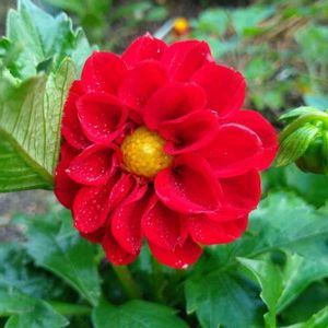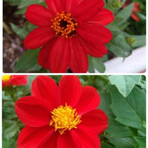 採取した種を8月に蒔いた赤いジニア❣️ お花が咲き始めました🙌 庭には種蒔きからのピンクのジニアが咲いているけど… 赤も可愛い~(ღˇᴗˇ)。o♡ 💕 下は…地植えの赤いミニダリア❣️