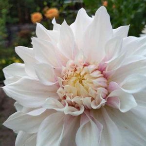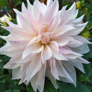 白い大輪ダリア🌼 先日の大輪ダリアとは少し違って中心に色が入るタイプのダリアです🎶
