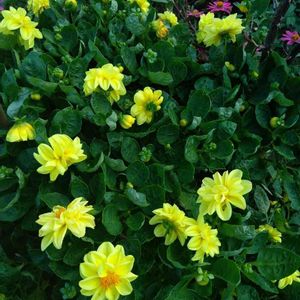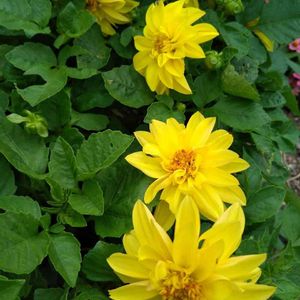 🍀おはようございます🍀 地植えのミニダリア💛 切り戻し後、再び咲き始めていますが 花数がやっと増えてきました😄🙌 💛カラーで今日も💪で 頑張りましょうね~😄