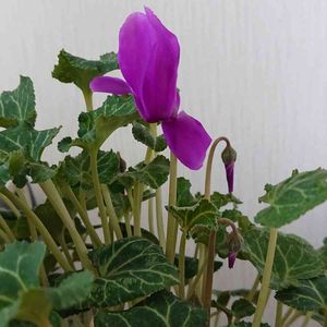 先日 金曜日の蕾たち🏷️に 投稿した シクラメンが 今年初 咲きました😀 去年の夏越しして 年末の開花を 期待したのに 葉っぱ🌱ばかり 元気‼️ 今年は 花は 無理かと 思ったら なんと こんな時期に 咲くんですね🤗