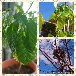 今日のお花 コーヒーの木 無事に3年目になりました⤴️⤴️⤴️😀 ハイビスカス🌺の蕾を 下から 今日は 日光浴中🤗 まだ いくつか蕾が 見えます⤴️😀 紅葉🍁の葉っぱ🌱が 落ちた後 下から撮ったら 何かの ≪巣≫が 残っていたけど 居住の気配なしで 居なくなってしまった😅 オケツの日に 参加させて下さい🙇