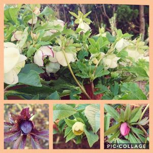 鉢植えのクリスマスローズ集めて撮りました🤗 下↓には 蕾も控えてます😀 後どれくらいで 咲いてくれるでしょう🎵 楽しみです🤗