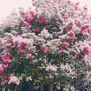 年に2-3度 このような姿が 観られて 上の方まで咲いたピンクの山茶花の上に白く積もった姿も 綺麗です😀