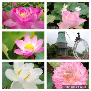 2023.7.9 Sunday ☁️ 風が強めに吹いていますが、ムシムシとして暑い夜です。 優しい気持ちにさせてくれる蓮のお花。 この蓮は、「玉鸞(ぎょくらん)」と表記してありました。 八重咲きのお花のようですが、これは、咲き出しかけているふっくらとした蕾です。 この花蓮園は、沢山の蓮の種類があります。 案内には、80種ありました。