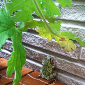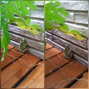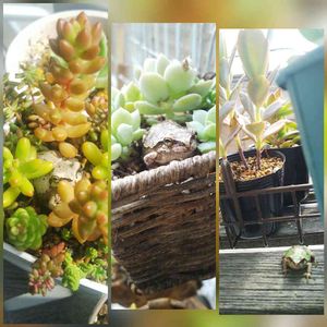 🐸おれ、見えるー? 毎年暖かくなると必ず一匹は住み込みに来ます、 みんなまとめてジェームスさんと呼んでます🐸✨ 昼間はうちに居るんですが、夜になるとフラフラ出稼ぎに行きます😅 小柄なのに💩がデカイんだよなー😅 鉢の中ではするなよー😑💢