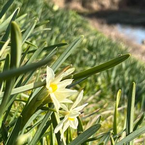 川沿いの水仙 陽の当たる土手で、暖かそう☀️ 今日の昼間のウォーキングは、少し汗ばむくらいの陽気でした でも明日は東京は雪だとか、、、 まだまだ寒いんですね😵 水仙の花もいろんな種類がありそうだなぁ〜