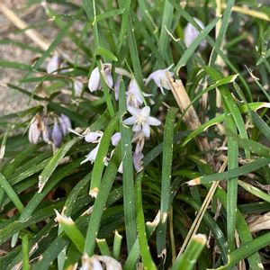 リュウノヒゲ? 土ではなく、大きな木の根本の穴? から生えていました😲 たくましいなぁ〜🌱 小さい小さい花を咲かせています✨ 青い綺麗な実をつけるのでしょうか?