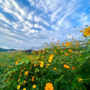 夕方川沿いを散歩 黄花コスモスが見事に咲いていました☺️