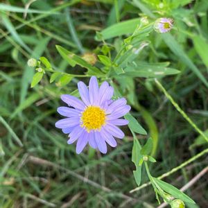 ノコンギクでしょうか よく見かける野の花です 伊藤左千夫作 「野菊の墓」に登場する政夫さんのセリフ 「民さんはそんなに野菊が好き……道理でどうやら民さんは野菊のような人だ」 の、野菊は、ノコンギクのことではないかと言われているそうです むかーし「野菊の墓」の映画を見たことを思い出す。 松田聖子さんが民子さん役で、 これは彼女の初主演映画🎬 これっぽい野菊を見るたびに あの、初々しくて、お大根のお芝居を思い出しながら 懐かしさに胸がキュンキュンする😌 でも、かなり、、、 せつないお話なんだよなぁ〜😢 映画曲の「花一色」も好きだったなぁ〜♪♫ YouTubeで歌を聴こっと