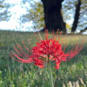 ひとつだけ咲き残っていた 彼岸花。 今年、ちゃんと近くで見られなかったから残念だなぁと思ってたら💦💦🥲 待っててくれたみたいに一輪だけ残ってました。 嬉しい✨✨✨とっても
