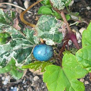 通勤途中シリーズ✨182 同じく地下鉄に乗る直前のマンションのノブドウ🍇 なかなか花が咲かないな、実は無理かなと思ってたら、1つだけど、なった‼️ うちにも1株有りますが、チェリー🍒セージと、ガウラさんの勢力に負けて💦弱々しい状態。頑張れ✊‼️ノブドウ‼️