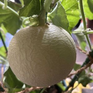 ころたん🍈 ネットの中が気になったので…🧐 網目が出てましたー! 1枚目は🥎位 2枚目は⚾️位ですが、大きくならずにずっとこの大きさを維持してるようです😅 つるの整理をしてないからでしょうね… 大きさはおいといて、🍈らしくなった事に感動してます🥰