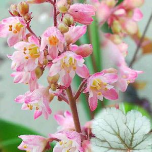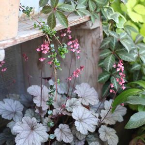 ヒューケラの花 それぞれ可愛いです これは『ミラノ』 右下が葉っぱの色