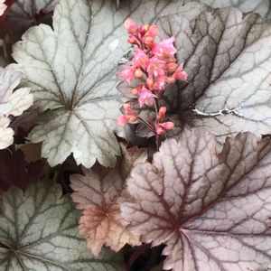 大好きな💕 ヒューケラ ミラノ✨✨ シルバーっぽい感じの葉✨ ピンク色のお花が可愛くて〜😆 お気に入りです☺️💕
