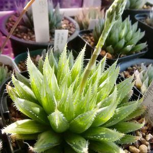 ハオルチア リポンズ Haworthia ripons MBB6556 NW of Ripon Station, S of Middelton 買った時、紫が買った青系の色調が薄いのか冬季や寒い時は東雲色とありましたが今もまだほんのり東雲色しててなかなか趣があります。 とはいえ真ん中はこの通りですね。