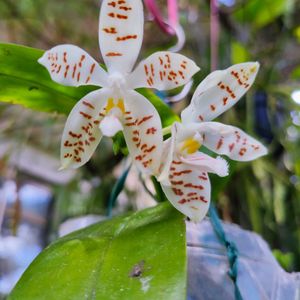 さあ帰りましょ〜と出口に向かっていたら ファレノプシス千円でいいよとKokkok Orchidのお兄さん 原種系こんな安く買えないよね😳 片手に1株、両手に2株お買い上げ〜🎶 1️⃣Phal. gigantea 3.5" Big' x violacea Indigo 'Navy blue' ギガンティアとビオラセア インディゴの交配 丸みのある葉と迷いましたが、お花の可愛いこの子に 2️⃣お日さまマジック☀️🪄 ギガンティアのドットが想像通り可愛い😍💕 3️⃣Phal. zebrina (sumatrana) ゼブリナ(スマトラーナ) 所有株がお亡くなりになったので、リベンジ 帰ったら右の花茎ポキリンしていた ショック〜∑Σᔪ(°ᐤ°;)ᔭᐤᑋʹ̣ㅱ 節のことろにケイキペースト塗ってみようかしら😎 買いすぎちゃったなぁ〜💸 次回のサンシャインまで自粛します ほんとに自粛できるのか⁉️