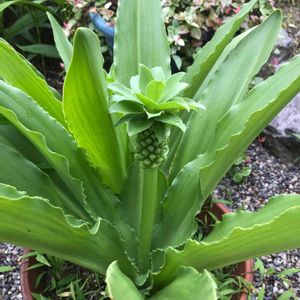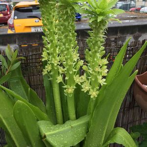 パイナップルリリー、順調に生育中。 梅雨に濡れて綺麗ですね〜🌿🤗