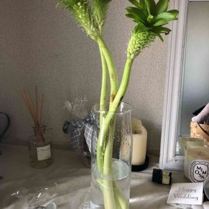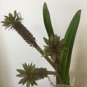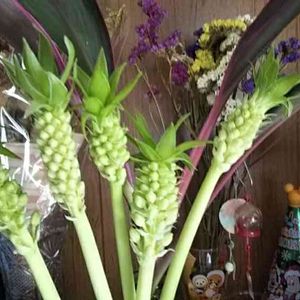 おはようございます😊 3日ほど、家を空けている間に、パイナップルリリーが、花開いて、伸びていました😄蕾のほうが 、パイナップルに見えますね😉