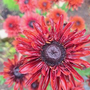 ルドベキア・キャラメルミックス お日様が似合うお花だけど、 雨の日は、発色が鮮やかに感じます、