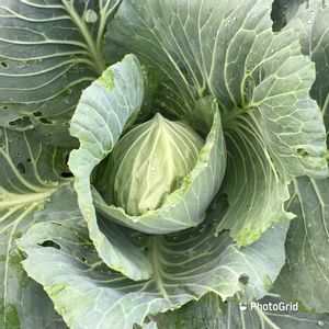 7月にハクサイと一緒に苗を植えたキャベツ、この子はひと足先に食べられそう^_^。 ちょっと🐛がついてるけどね^_^。