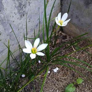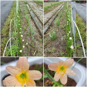 花壇の縁に咲きだしました。タマスダレ !Σ(×_×;)! 雑草の整理中、☔が降り続き非常に見苦しい花壇ですが、咲き揃い始めたので👀📷✨アップさせて頂きます。 雨降りやまず、嫌な毎日ですね~☔