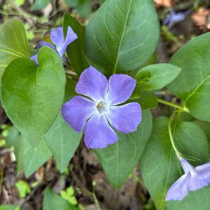 ツルニチニチソウ(蔓日々草)が咲いていました。 キョウチクトウ科で、花径約4㎝の花です🌼 青紫色💙💜の花が、よく見られるようになりました💞😃