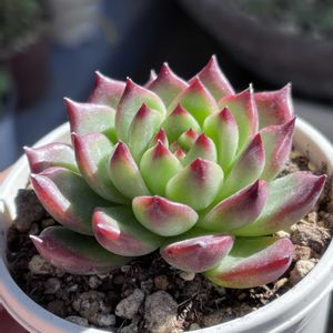 おはようございます😃 エケさん2枚です。 先月ボタニカルショーでお迎えした柏屋商店さんのマドンナ。色が可愛くて一目惚れ🩷 3年目くらいになるプレゼント🎁ポンヤリした印象だったのが、大きくなって爪がしっかりしてきて、いい感じになりました😊これからの季節でもう少しキュッとなってくれたらいいな。