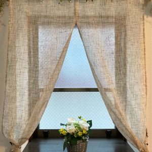 100均の造花、25年以上前に買ったアルミ製のカゴ、使わなくなった暖簾やネックレスを利用して窓辺を飾ってみました。