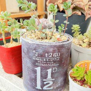 リメイク缶に寄せ植え💕 「たばこ」ではなく「たにく」笑🤭 豪華に葉挿しっ子のクリスペートビューティーもinしてみました💕