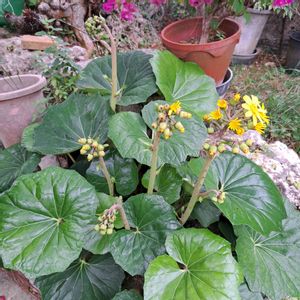 おはようございます👋 💛今日のお花💛 🌿ツワブキ🌿 我が家のツワブキ 蕾がまだ硬い😀 19℃