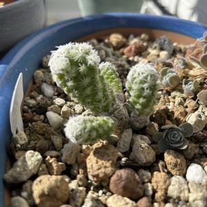 寒い日が続いています❄️ 室内に移したサボさん🌵 右は頂いた子、左はガチャガチャの種から育てた子です😊🎶 G_ceramicaさんからマミラニア・銀手毬と教えていただきました😌✨ ありがとうございました🙇♂️ 左のサボさんはまだ名前がわからずです💦 こちらはガチャガチャから出てきた種から育てたもので🌵もしわかる方いましたら教えてください🙇♂️
