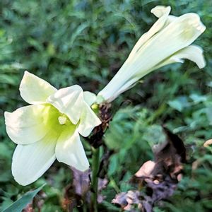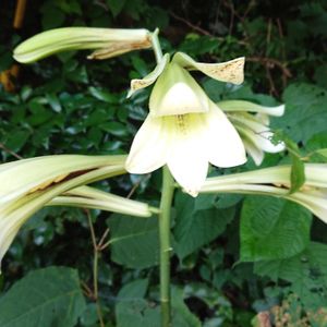 ⭕オオウバユリ ❌ウバユリ 姉の家の畑に現われた大きな花! 翠さんに教えていただきました。ありがとうございます。 みるみる大きくなり花が咲きました。 こんなに沢山の花を付けるのですね。 これも鳥さんのお手柄の様ですが、本来ここでは自生してない花らしいです。 何処から持ってきたのかな?