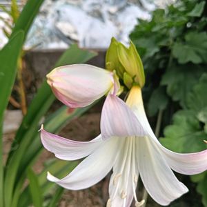 何年ぶりかな〜 ミニアマリリスが 咲きました🩷🤍😄