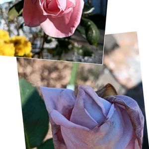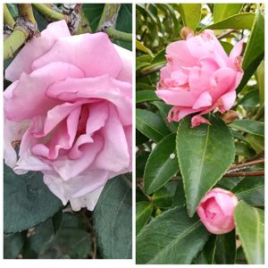 左がブルームーン薔薇 右が山茶花です🩷🩷