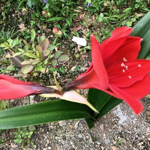アマリリスが 咲いたよ 鉢植えでは咲かなくて 地植えにしてました🥰
