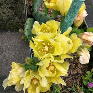 夕方の花壇から🤗 ウチワサボテンの花が咲き始めてました💛💛💛💛😍