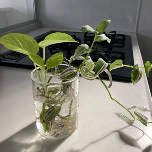 コロナ禍で母から癒しのプレゼント✨ すくすく育ってます◡̈⃝ ポトスともう一つの名前が分からない… 母も知らない…