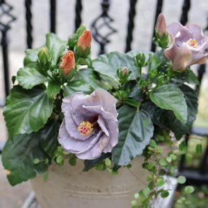 ついに手を出してしまった😆 禁断の花… しかも寄せ植えにしてみました🤣 その1つ目🌺🌿 10数年くらい前だったろうか?! 私の中で、沖縄ブームがあった まあ、毎年夏休みのランドシーにぐったり疲れて沖縄へ切り替えたので、よけいに際立った印象となったのだろうが… あの独特の時間の流れ… ゆったりとした沖繩時間⌚に、惚れた😍 そして関西の現実に帰った時… 憧れから🌺ハイビスカスのスタンド仕立て(幹が2本ネジネジされているやつ🙄)を購入した🎶 が…冬越し出来ずに枯らし😰 また沖繩から戻ると、スタンド仕立てを購入しては冬越しに失敗…を3回ほど繰り返したので… 私には育てられない😓もう二度とハイビスカス🌺は迎えない。と決めていた。 ところが、一昨年辺りから…ブルーのハイビスカスを見かけるようになり、ちょっとだけ気になっていた😂 そして、週末に出逢ってしまったである…ひとまず1鉢、いや…色違いで2鉢を寄せ植えにしてみた。 不思議な色合いが可愛ゆい💖ではないか🤩デレデレ… そう言えばもう1鉢が残っていたなぁ…翌日、朝から🚙を飛ばした。 売り場へいそいそと小走りで向かう… あぁ…ガックリ… 無い…😭 売れてしまったのかぁ… 諦めきれずに…売り場を一周して戻る。仕方ない他の色を一応見てみよう… と、たくさん並んでいるハイビスカスの棚をよく見てみると… 居た😳!ではないか ケイトちゃん💖 蕾ばかりだったうえにラベルが裏を向いていたので見逃していた💦 ふぅ~😅 良かった🎶🐦 2人目のケイトちゃんを無事に確保して…一緒に植え込むコ達を探しに、他の園芸店へ🚙〰したのであった 思い込んだら惚れ込んだら一直線だ🤣🤣🤣 因みに、冬越しは…謎だ😂 今後の課題だ…