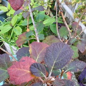 2023.12.30 晴れ☀️ [柏葉アジサイ] 葉っぱ🌱が赤くなっています。 来年もいっぱい咲いて下さいね🎵