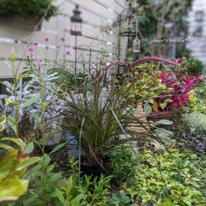 リーフ中心のローメンテ花壇を目指し早数年 ひとまず鉢で育て、バランスを見ながら花壇に配置してみたり…もうずっと模索中 “パープルファウンテングラス” シックな銅葉に朱穂 風に揺れる姿が本当に素敵なんです 耐寒性は無し だけど、どうしても欲しくてお迎えしました リトルロマンスも良い色になってきました